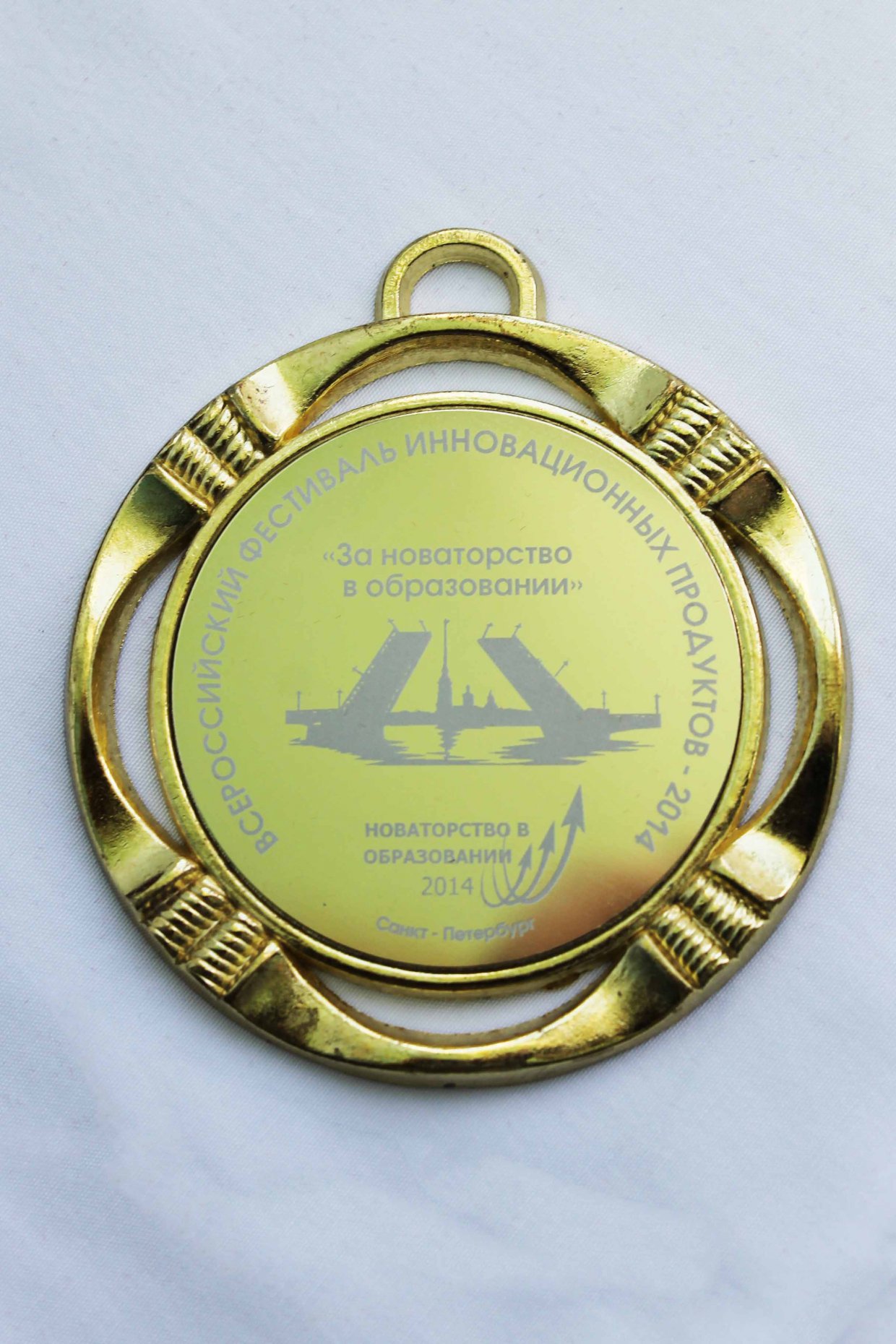 Золотая медаль "За новаторство в образовании", врученная в рамках "Всероссийского фестиваля инновационных продуктов - 2014", Санкт-Петербург, 2014 год.