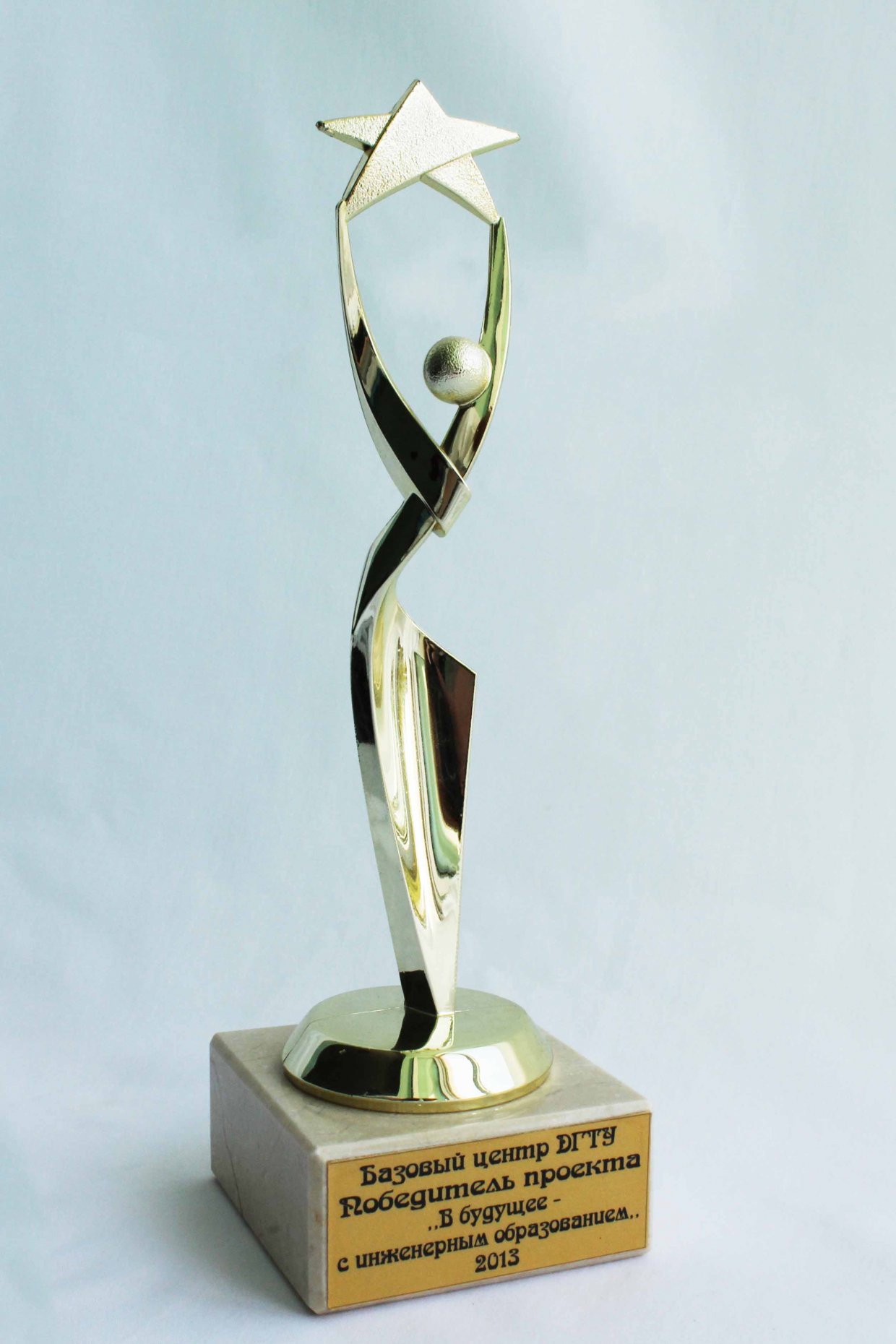 Награда за победу в проекте, организованном в 2013 году Донским государственным техническим университетом "В будущее - с инженерным образованием", на котором наш Межшкольный учебный комбинат выступал в качестве Базового центра ДГТУ.