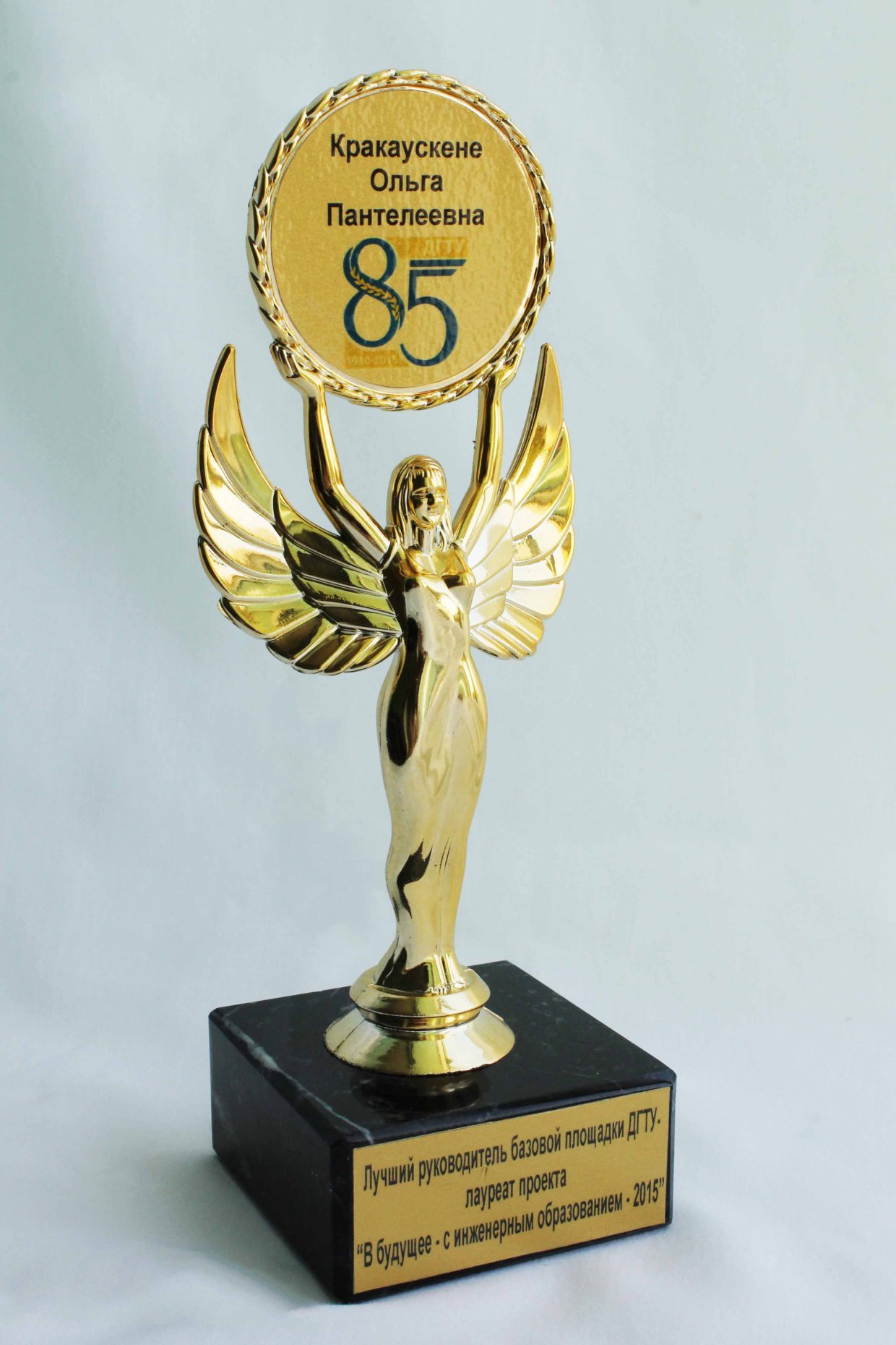 Статуэтка лауреата проекта ДГТУ "В будущее - с инженерным образованием", за победу в номинации "Лучший руководитель базовой площадки ДГТУ", 2015 год.